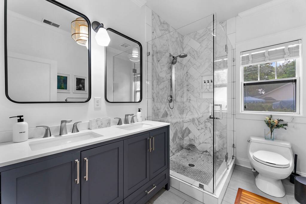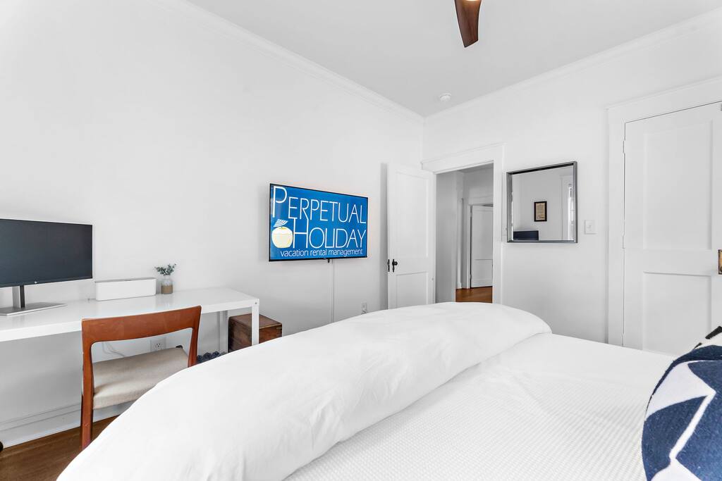 The property features: PRIVATE, IN-GROUND POOL Welcome to your backyard oasis. The saltwater pool can be heated for those crisp fall nights or chilled for the steamy summer days. The backyard also features a putting green, 6 sun loungers, a gas fire pit, a gas grill area, and a teak outdoor dining table for you and your friends and family to all gather around, relax, and enjoy! SOUTHERN PORCH CHILLING The front porch features a comfy day bed swing and two rattan chairs. The string lights above contain Bluetooth speakers to help set the vibe. BRIGHT, OPEN LIVING AREA The space flows from the sitting area into the dining area into the kitchen, making it easy for your group to comfortably gather and spend time together. From the front foyer you enter the sitting area, which contains two West Elm leather sofas and a large Roku television. The dining area, which seats 6 comfortably, is perfect for a family meal or game night. We provide a nice collection of games as well as a poker set. FULLY EQUIPPED CHEF'S KITCHEN The kitchen features a gas range, 48-bottle wine fridge, and lots of counter space. It is equipped with most everything you should need to make a delicious meal - a variety of pots, pans, dishes, knives, cooking utensils, a full spice drawer, some dry goods, and a full pantry for you to store your food. There are 4 seats at the kitchen island. THREE COMFORTABLE BEDROOMS The primary bedroom suite is situated in the back of the house for privacy. The king-sized bed is adjustable at the head and foot of the bed via remote for maximum comfort. The front two bedrooms are also both equipped with king-sized beds. We only use white cotton linens with fluffy duvets for a touch of hotel elegance. All three rooms have large televisions and ample space to store your belongings. TWO FULL BATHROOMS The primary bedroom features an ensuite bathroom with a large walk-in shower. The second bathroom is located between the other two bedrooms and has a bathtub/shower combo. AMPLE PARKING With its own private driveway that accommodates 2 vehicles, and additional parking in front of the house, parking and unloading will be the least of your worries throughout your stay here! INCLUDED WITH EACH STAY: 100% cotton bed linens and towels High-speed internet/Wi-Fi Coffee, tea, and sugar Toilet paper and paper towels Public Goods shampoo, conditioner, hand soap, body wash Dish and laundry detergents Hair dryer Iron and ironing board Cooking supplies and kitchenware Board games and books