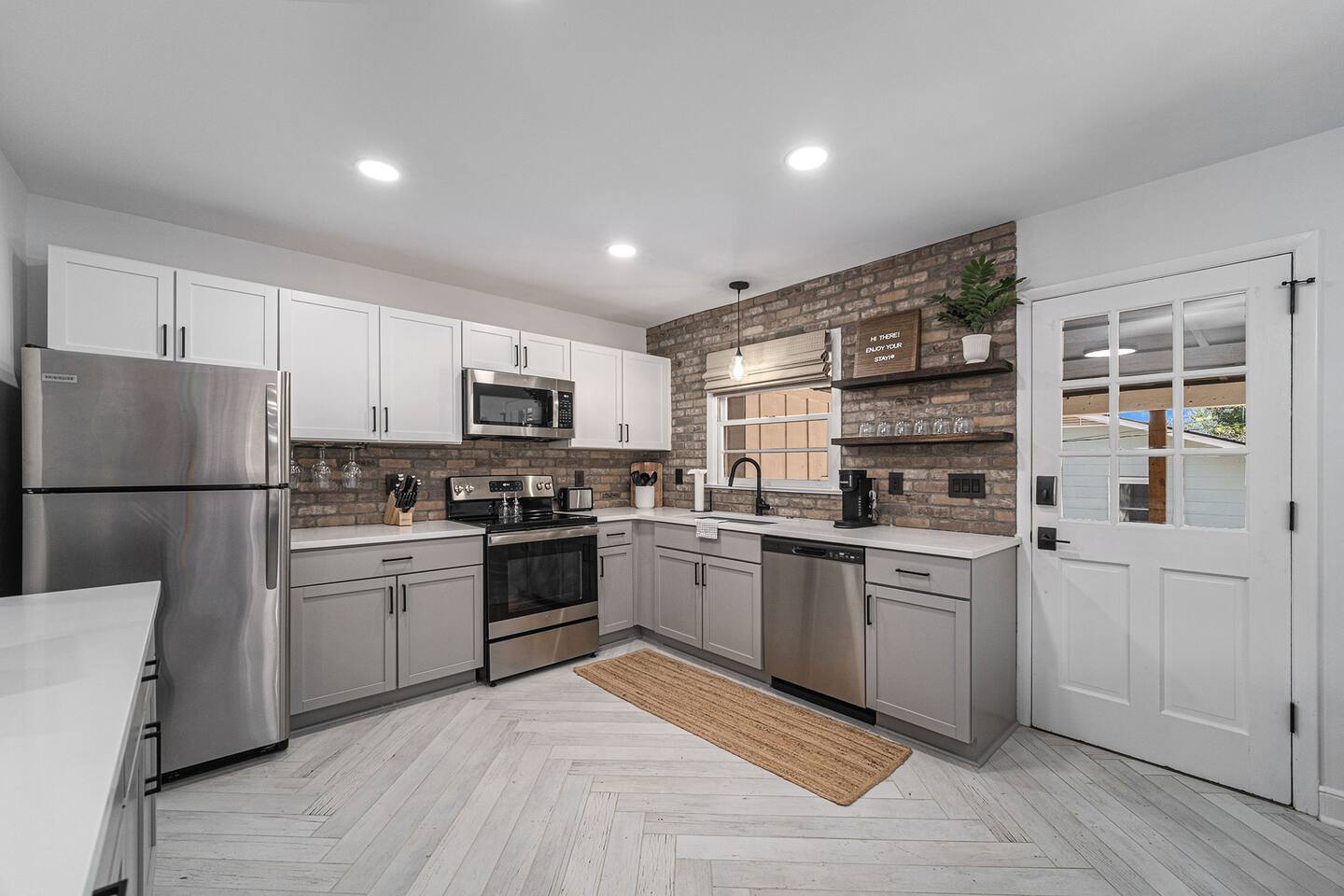 ↠ Please take note of a few IMPORTANT considerations before booking your stay ↞ - Behind our home there is a set of railroad tracks with TRAINS that pass by at varying times. Train enthusiasts will find this particularly delightful, but we want to be fully transparent with our guests about this who may be sensitive to such sounds especially while sleeping. We do have box fans and disposable ear plugs in each room to help with those that like white noise at night. - To ensure the security of our home when it is unoccupied, there is a Ring security camera positioned outside the entry door, the front of the home, and the back of the home. These cameras use motion sensors and do record video and audio. They are only checked if there is an incident or if a guest needs help checking in. There is also a noise monitor in the living room. It does not record video and audio. These are no cameras in the house and no camera that captures the hot tub.. -This house is located in a quiet neighborhood. We do not allow for parties of any size and quiet hours are from 11pm to 7am. - We kindly ask that all vehicles are parked in the driveway and not on the street.