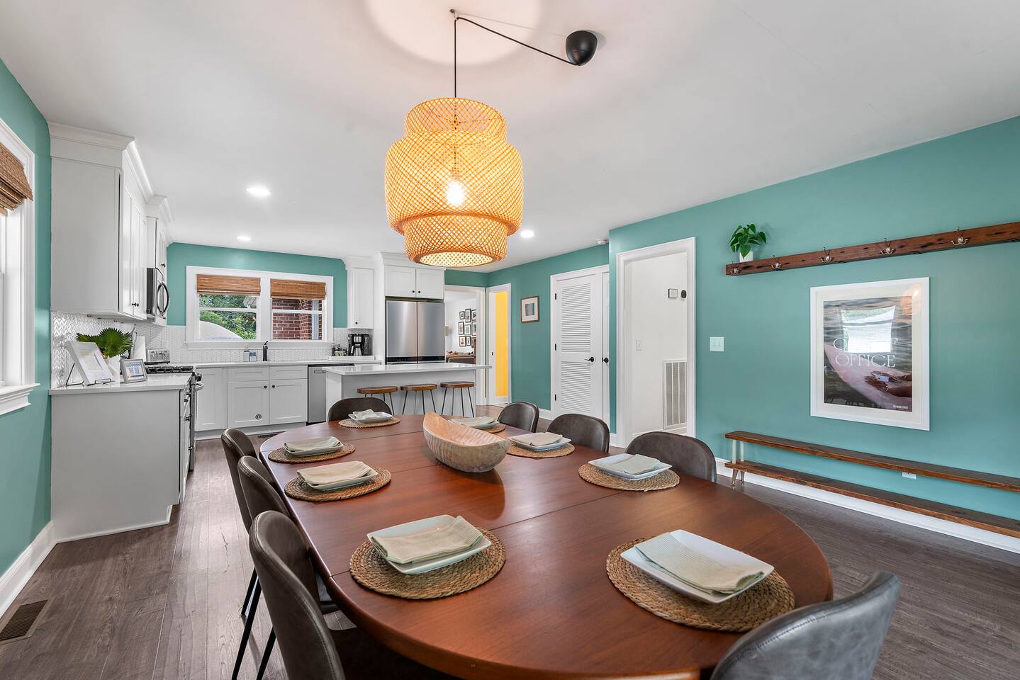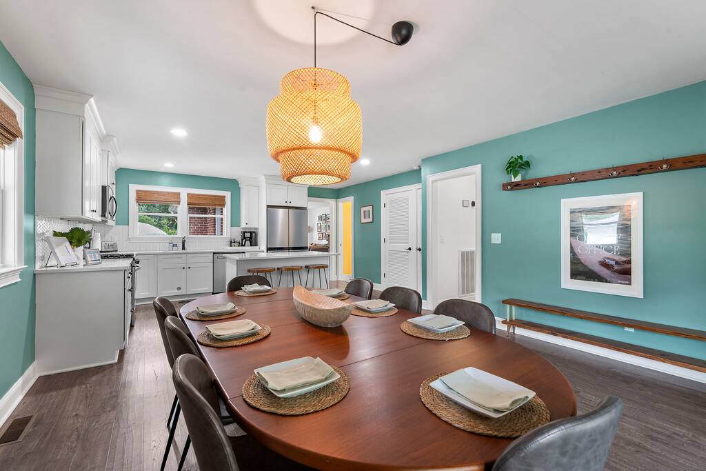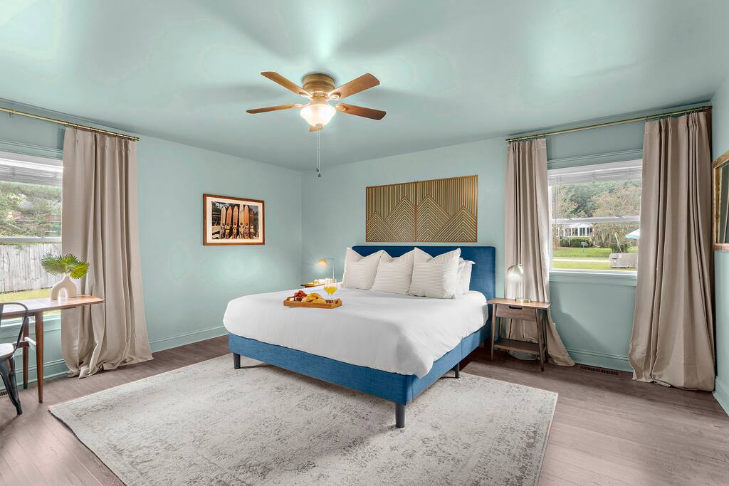 Located in the Park Circle neighborhood of North Charleston, our house is an ideal place to stay when visiting the Charleston area for work or play. Park Circle is a friendly, eclectic neighborhood conveniently located a short drive from the airport, downtown Charleston, and the beaches (10 minutes to the airport, 12 minutes to the North edge of downtown, and 15-20 minutes to the beaches at Sullivans Island and Isle of Palms, to be more precise). Its also about 10 minutes to Credit One Stadium, the Performing Arts Center, and the Coliseum AND less than five minutes from Firefly and Riverfront for all you concert and festival lovers. Our diverse and open-minded neighborhood is experiencing an exciting revitalization. It is an easily walkable area peppered with several parks, green spaces, and outdoor recreational areas, even its own disc golf course. A new community center opened in November 2023 in the very center of Park Circle, with a huge inclusive playground. We cannot overstate how cool this playground is. Walk to the Farmer’s Market on Thursdays, pick up some craft beers at the Brew Cellar, shop for vintage at The Station. Be sure to visit Stems and Skins, our friendly neighborhood (James Beard nominated) wine bar and try some of our awesome local restaurants. You can walk or bike to Riverfront Park, located just outside of Park Circle on the Cooper River. Riverfront Park is home to the High Water Music Festival, hosts many other concerts and festivals throughout the year, and is a great spot for a picnic. Top Golf and the Tanger Outlet Mall are both about ten minutes away. The last thing we will note about the neighborhood is that it is encircled by train tracks that service Charleston’s port. The trains can create a fun memory for children; however, if you think the noise may bother you, you may want to consider staying in a different part of the Charleston area. Other than the occasional train horn, we think you will find the neighborhood peaceful and quiet.