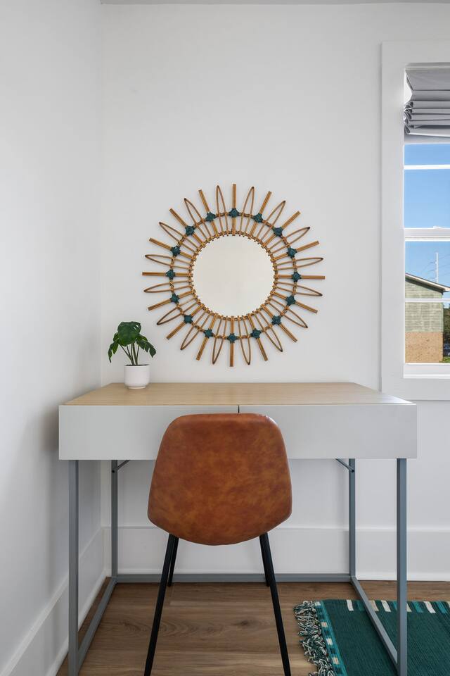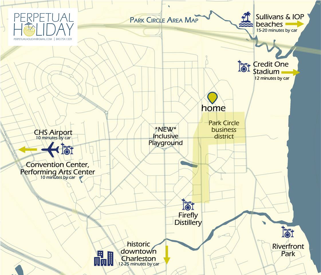 Located in the Park Circle neighborhood of North Charleston, our house is an ideal place to stay when visiting the Charleston area for work or play. Park Circle is a friendly, eclectic neighborhood conveniently located a short drive from the airport, downtown Charleston, and the beaches (10 minutes to the airport, 12 minutes to the North edge of downtown, and 15-20 minutes to the beaches at Sullivans Island and Isle of Palms, to be more precise). Its also about 10 minutes to Credit One Stadium, the Performing Arts Center, and the Coliseum AND less than five minutes from Firefly and Riverfront for all you concert and festival lovers. Our diverse and open-minded neighborhood is experiencing an exciting revitalization. It is an easily walkable area peppered with several parks, green spaces, and outdoor recreational areas, even its own disc golf course. A new community center opened in November 2023 in the very center of Park Circle, with a huge inclusive playground. We cannot overstate how cool this playground is. Walk to the Farmer’s Market on Thursdays, pick up some craft beers at the Brew Cellar, shop for vintage at The Station. Be sure to visit Stems and Skins, our friendly neighborhood (James Beard nominated) wine bar and try some of our awesome local restaurants. You can walk or bike to Riverfront Park, located just outside of Park Circle on the Cooper River. Riverfront Park is home to the High Water Music Festival, hosts many other concerts and festivals throughout the year, and is a great spot for a picnic. Top Golf and the Tanger Outlet Mall are both about ten minutes away. The last thing we will note about the neighborhood is that it is encircled by train tracks that service Charleston’s port. The trains can create a fun memory for children; however, if you think the noise may bother you, you may want to consider staying in a different part of the Charleston area. Other than the occasional train horn, we think you will find the neighborhood peaceful and quiet.